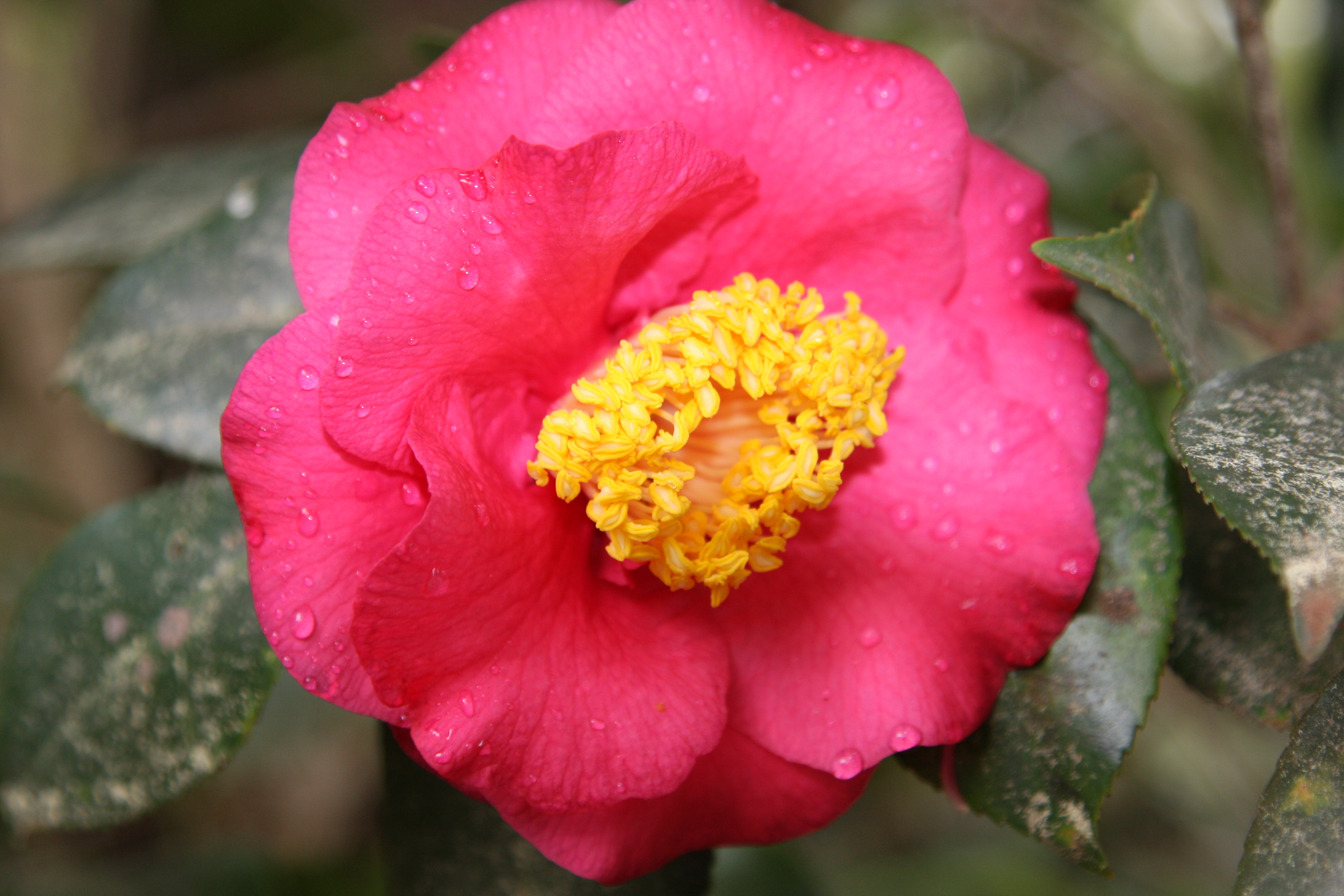 The Camellias bushes are about finished blooming in Georgia. Soon the scorching face of the sun will burn away the beautiful blossoms that decorate the dim winter exterior. So, as tribute to our winter flower, here are some photos I took in my Grandmother Margaret’s Camellia garden.